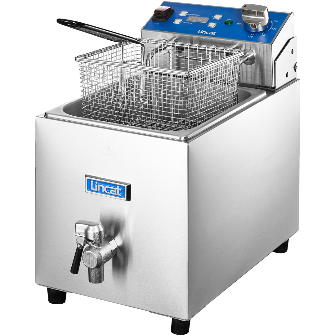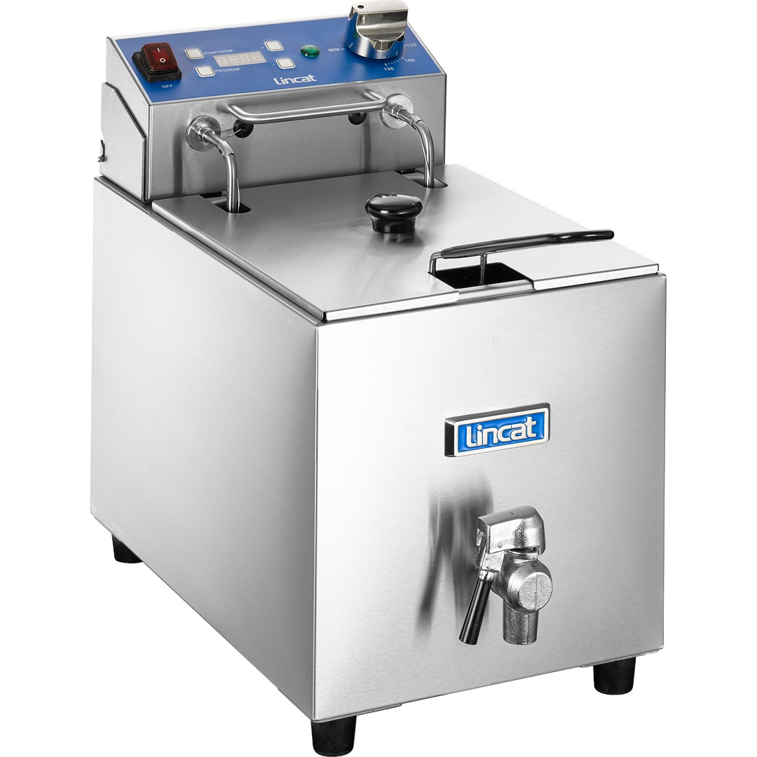 The Lynx Prime LPDFT is a powerful, compact electric countertop fryer featuring an 8L oil capacity, digital timer, and front-mounted drain tap for easy cleaning. With a 2.9 kW heating element, it heats rapidly and maintains precise temperatures for consistently crisp results — perfect for cafés, pubs, and small commercial kitchens.