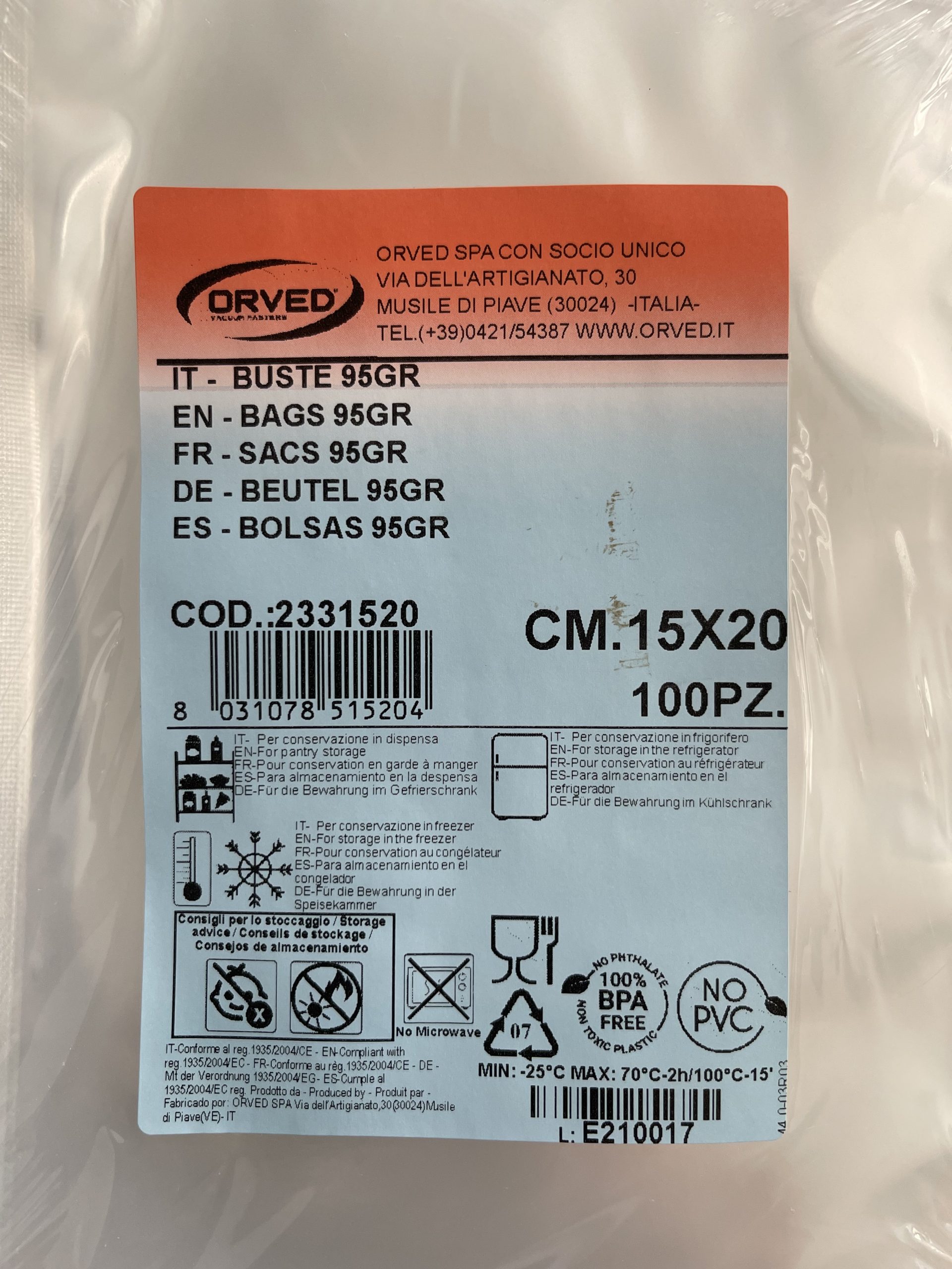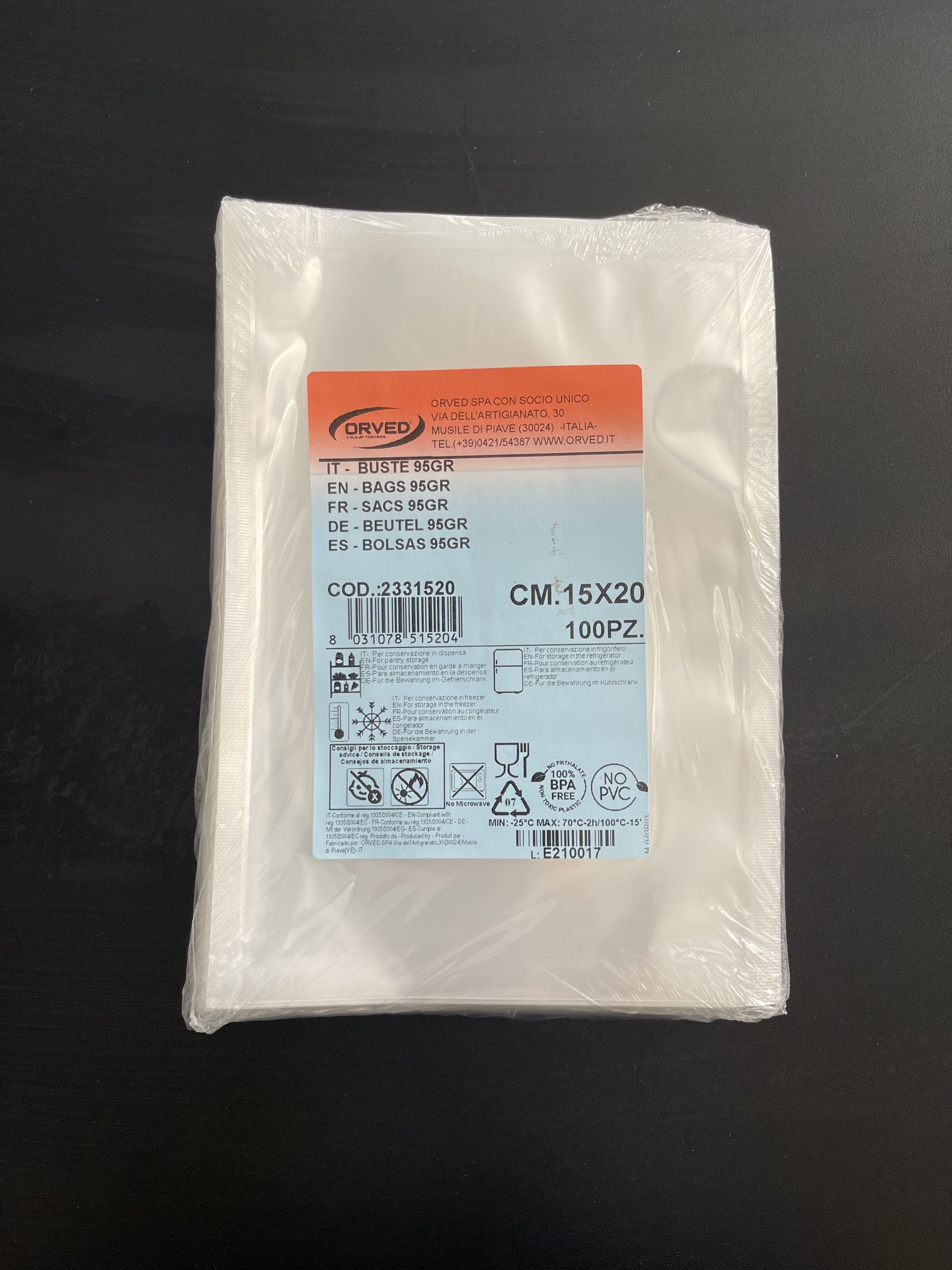 Orved have been manufacturing its own line of smooth Vacuum Bags for 12 years. A great deal of time has gone into research and development of innovative materials which could meet the most sophisticated requirements of Sous-Vide technology.