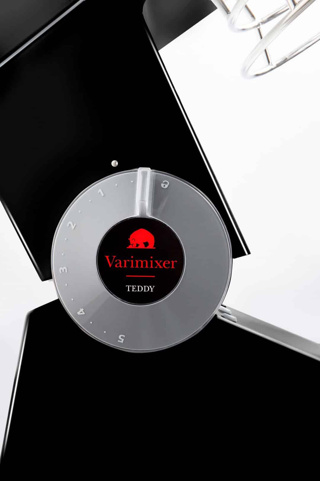 Easy Operation – Speed is infinitely adjusted using the pass-through control knob, which allows TEDDY 5L to be operated from either side. The knob is also the click-lock and hinge point when the mixer head is tilted back to change tools.
