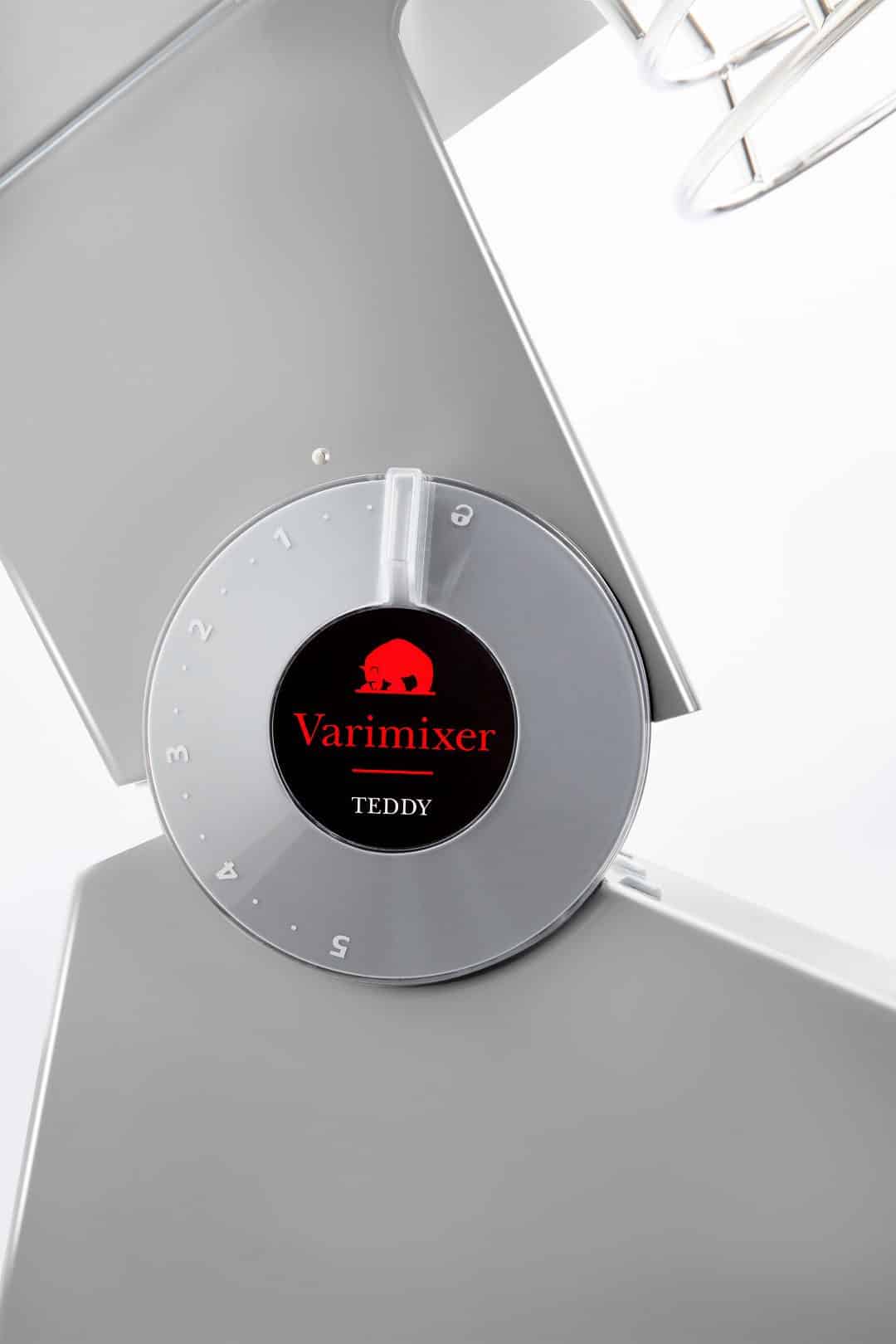 Easy Operation – Speed is infinitely adjusted using the pass-through control knob, which allows TEDDY 5L to be operated from either side. The knob is also the click-lock and hinge point when the mixer head is tilted back to change tools.