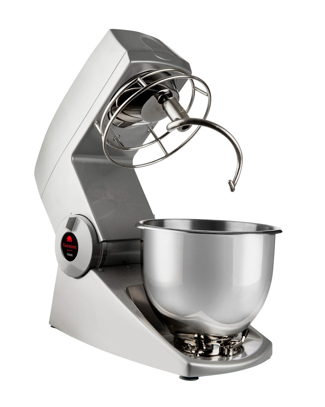 Effective Tools โ Varimixer TEDDY 5L comes with a 5-litre stainless steel mixing bowl with a lid, a wire whip made of 2.5 mm wire, a beater and a specially designed hook which ensures dough is kneaded and turned to perfection. All accessories are made of stainless steel and are dishwasher-safe.